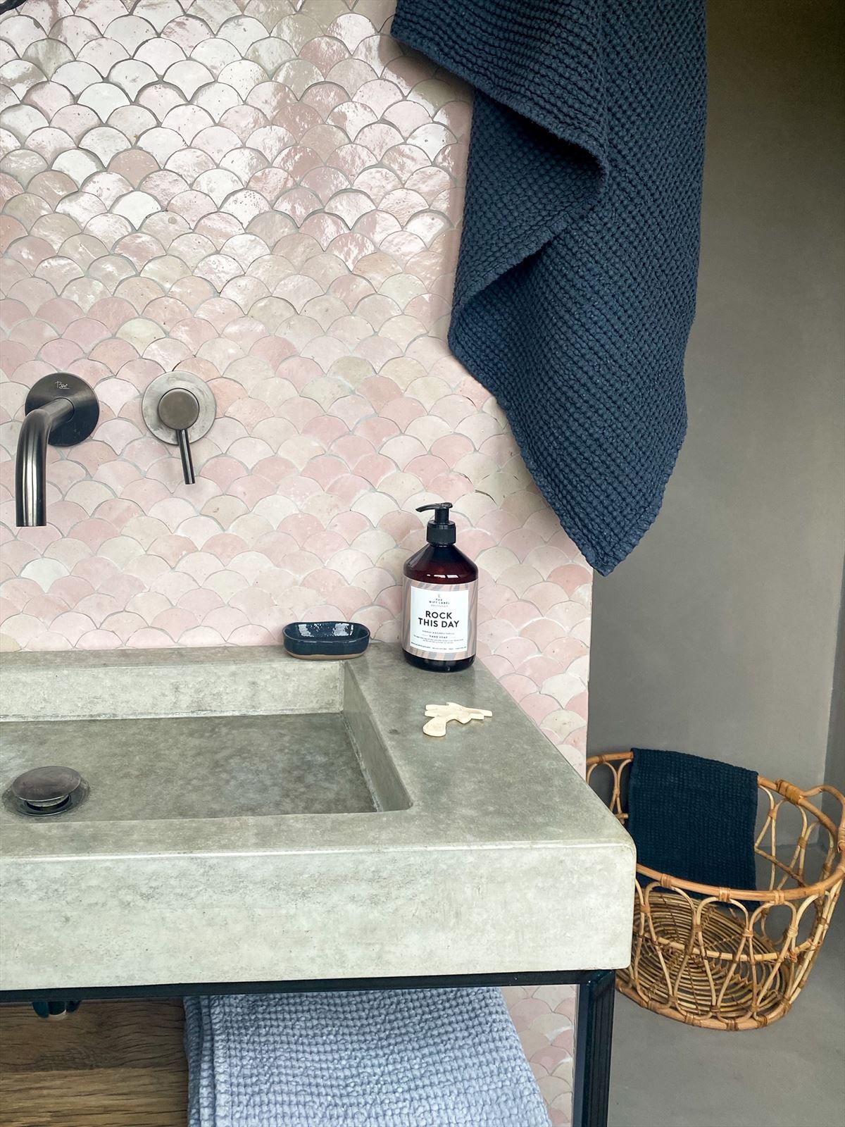 Die Zellige Gris Rose Poisson Echelles ist eine handgefertigte Wandfliese im Format 5x5 cm und einer Stärke von 1 cm und kommt aus einer unserer Fabriken in Fès, Marokko. Die Oberfläche ist glänzend und lebendig mit schönen Farbnuancen. Jede Fliese, die Sie dem Karton entnehmen, ist ein Unikat. Kleinere Schönheitsfehler, Kalknarben und schwankende Farbtöne sind produktimmanent und gelten nicht als Mangel. Der rustikale Look lässt sich vortrefflich kombinieren mit einem modernen Interieur.