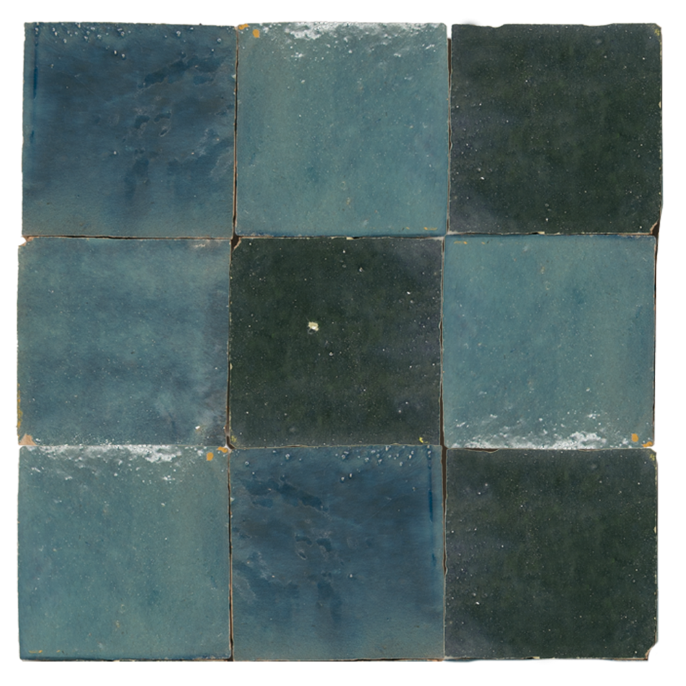 Zelliges können sowohl Innen- als auch außen verlegt werden. Für den Außenbereich beachten Sie: unter einem Dach, geschützt vor Wasser und Sonne. Wenn Wasser in die Fliesen eindringt, kann starker Frost zu Rissen in der Glasur führen.