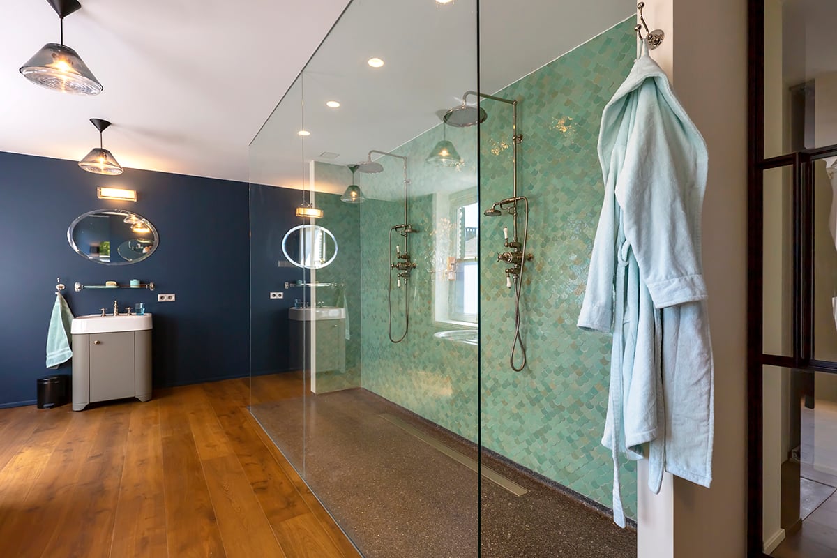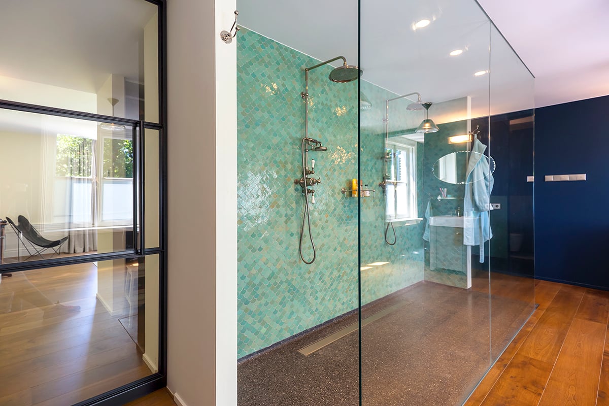 Zelliges können sowohl Innen- als auch außen verlegt werden. Für den Außenbereich beachten Sie: unter einem Dach, geschützt vor Wasser und Sonne. Wenn Wasser in die Fliesen eindringt, kann starker Frost zu Rissen in der Glasur führen.