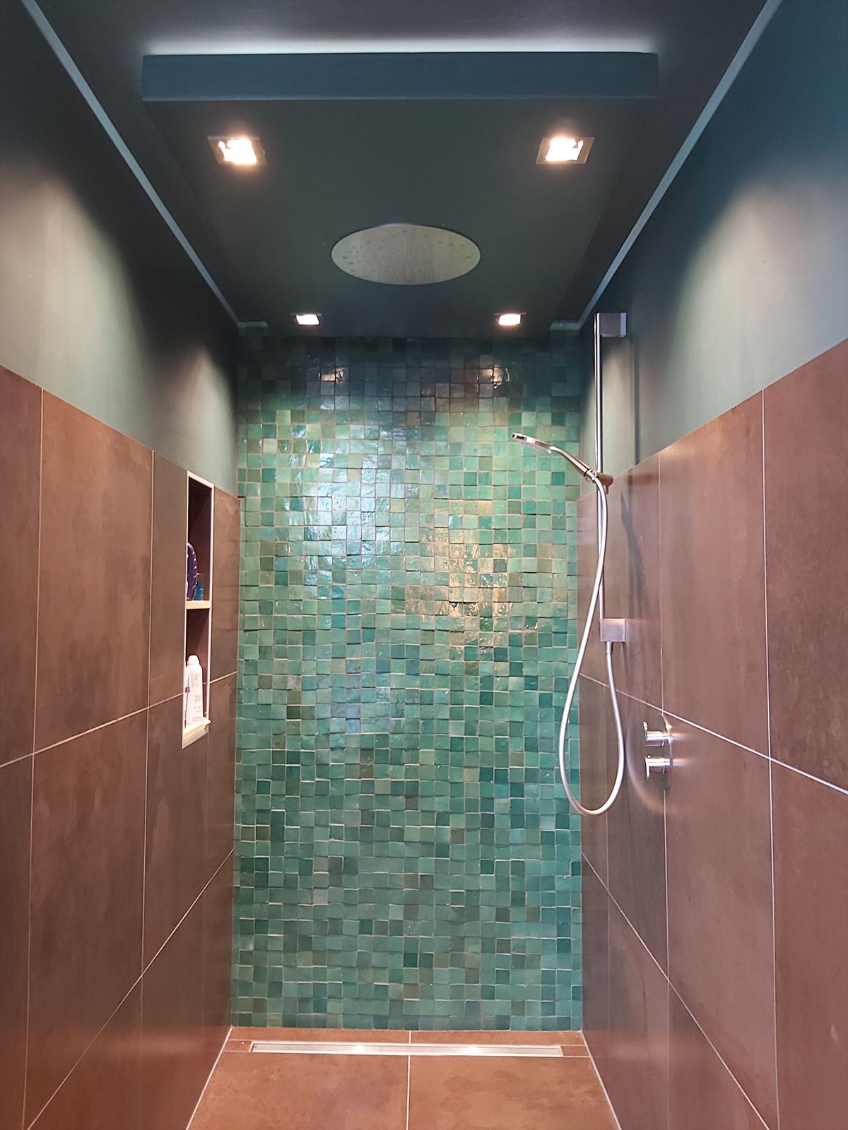 Zelliges können sowohl Innen- als auch außen verlegt werden. Für den Außenbereich beachten Sie: unter einem Dach, geschützt vor Wasser und Sonne. Wenn Wasser in die Fliesen eindringt, kann starker Frost zu Rissen in der Glasur führen.