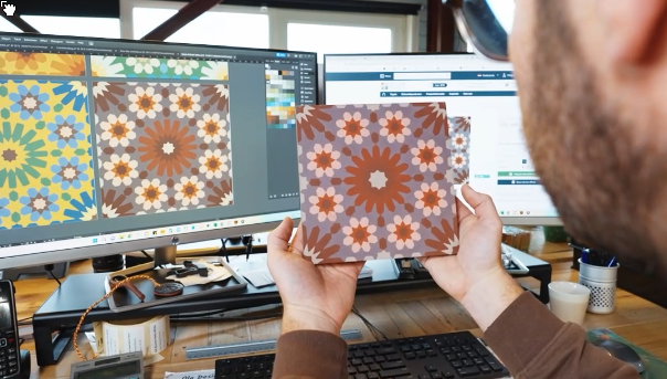 nach Ihren eigenen Wünschen einfärben und eine einzigartige Fliese herstellen! Unser Online-Fliesenplaner verfügt über ein spezielles Designmenü, mit dem Sie Muster-Schablonen mit Ihren unschfarben befüllen können. Diese individuelle Fliese können Sie dann direkt in Ihren Grundriss legen. Das Programm errechnet den tatsächlichen Bedarf.